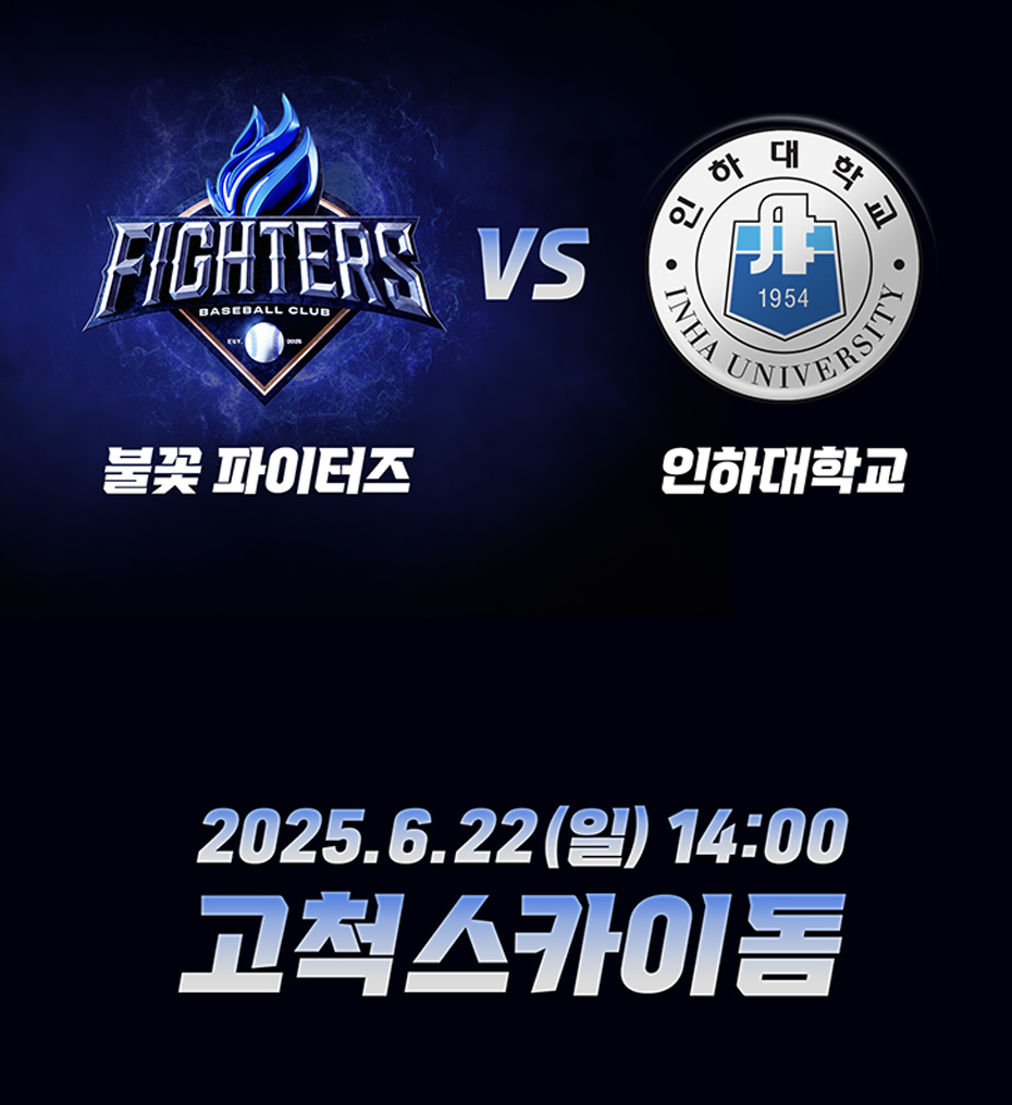 6월 22일 오후 2시, 고척돔에서 펼쳐지는 불꽃 파이터즈 vs 인하대의 뜨거운 대결을 놓치지 마세요!"
