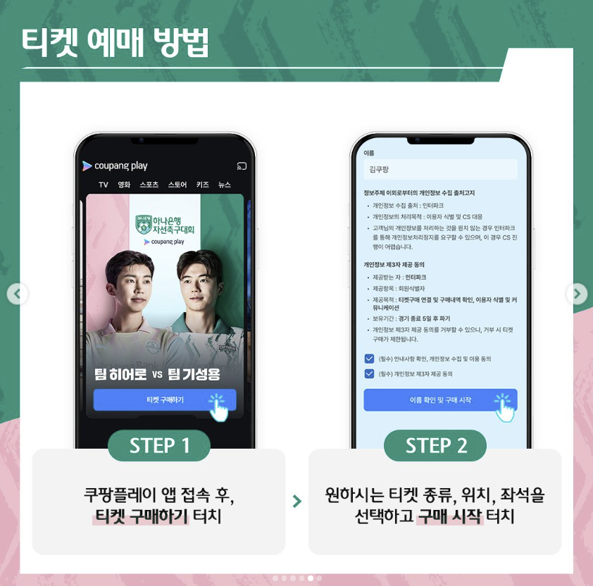두 번째, 팀 히어로 VS 팀 기성용 '티켓 구매하기' 클릭!
