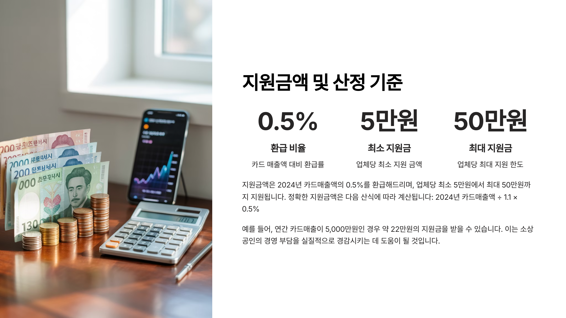 | 지원금 | 2024년도 카드 매출액의 0.5% |
